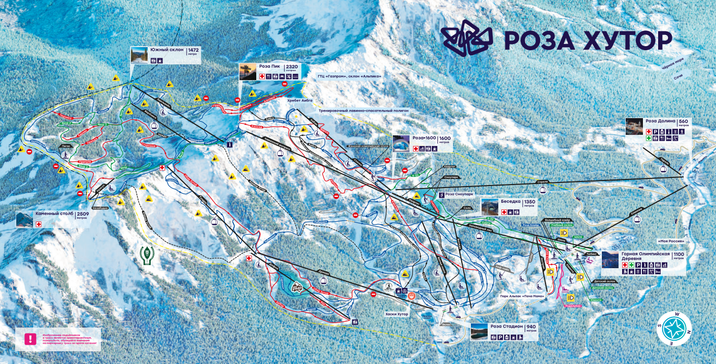 Горнолыжный комплекс «РОЗА ХУТОР» известен чистым обильным снегом, подготовленными трассами и отличным сервисом. Для катающихся доступны трассы различных уровней сложности. Катающихся поднимают 6 канатных дорог. В разной степени близости располагаются множество гостиниц, ресторанов, СПА-центров. Оснащен системой искусственного оснежения.